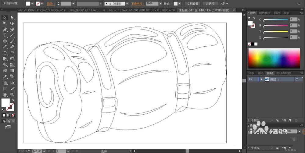1、先用钢笔画出床垫的基本轮廓,再把床垫上面的捆绑带与光线的变化一一用路径呈现出来。