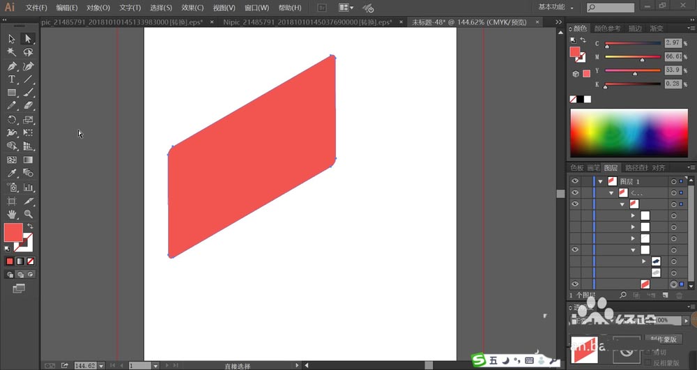 2、设置前景色为红灰色,我们用红灰色填充屏幕所在的四边形路径。