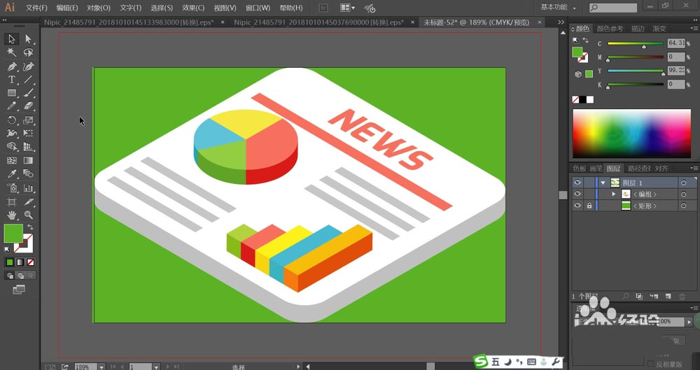 好的图标要能够快速的呈现事物的亮点,我们今天要画的新闻图标是一个抽象的事物,通过文字与图形让新闻这个抽象事物以图标的方式呈现出来,我们从中学习一下立体元素的画法,还有绿色、红色、黄色、蓝色的搭配应用技巧,今天花的2.5d立体效果的新闻图标,该怎么制作呢?下面我们就来看看详细的教程。