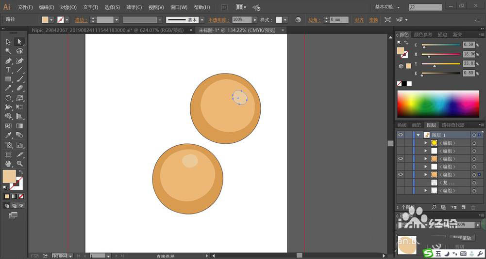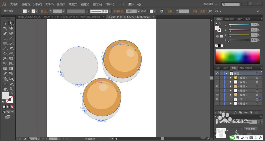 2、这一步,我们使用钢笔工具把蛋糕的卷边与面包表面的颗粒元素都一一用路径绘制出来。