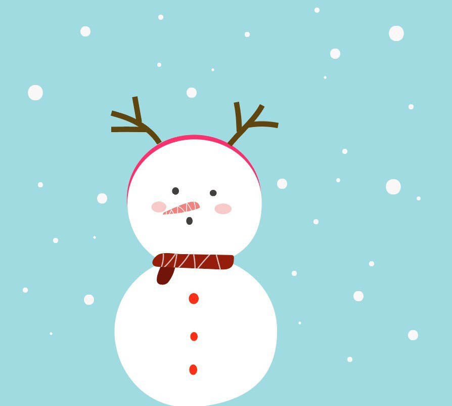 5、同上面一样的方法给雪人加上围巾。最后用画笔工具描边设置白色,用不同的描边粗细在画板上点上雪花。