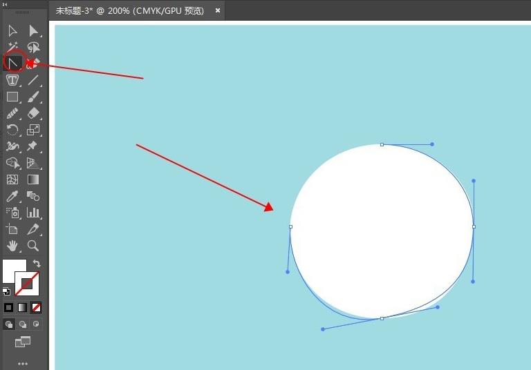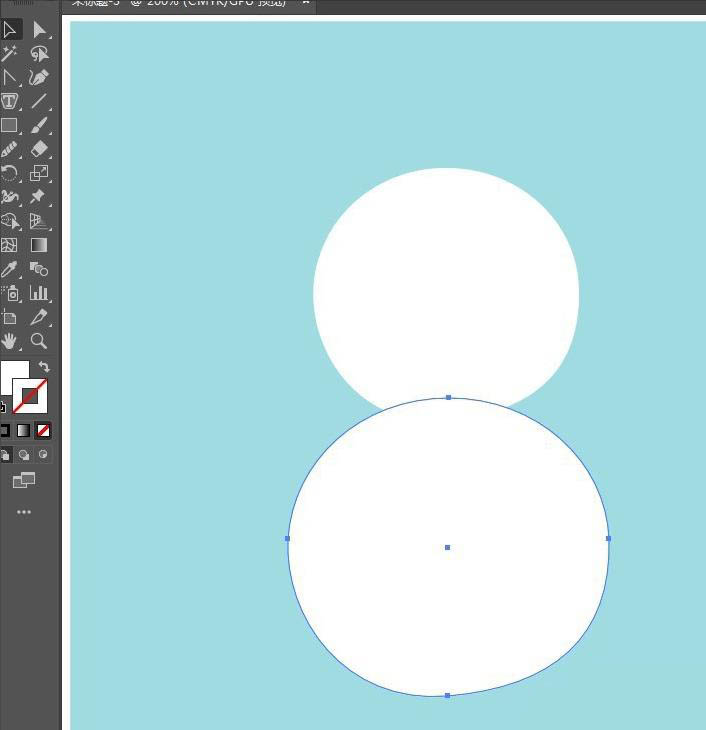 1、如图在画板上先画一个圆。用锚点工具将圆形调整成不规则近圆形。按住ALT键向下拖动圆形,复制出一个,放大并压扁一些。做雪人的身体。