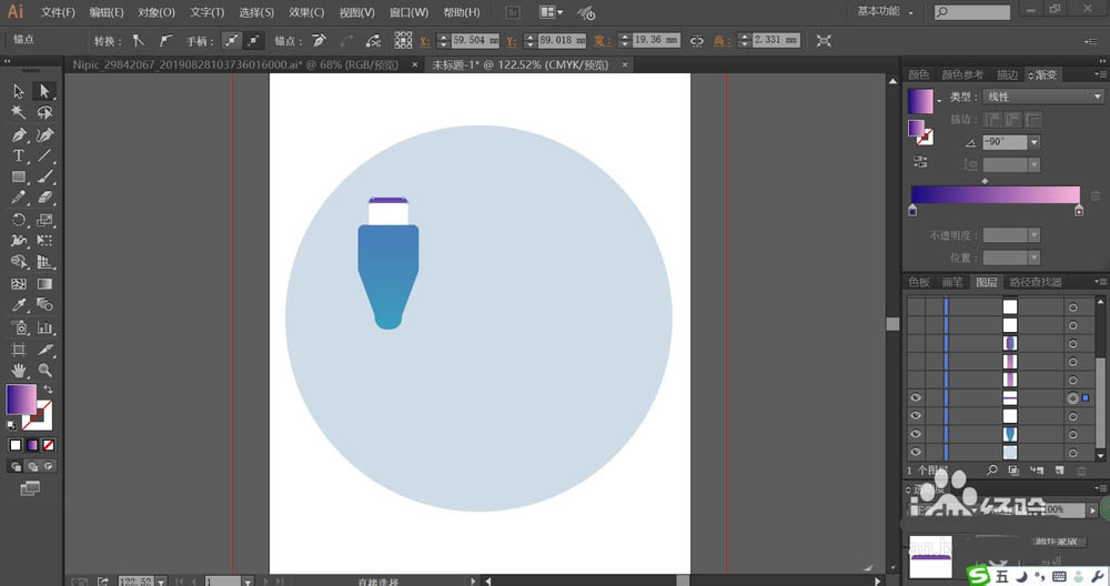 4、继续使用矩形工具画出数据线右侧的金属头的形状并用紫红色到蓝色的渐变填充。