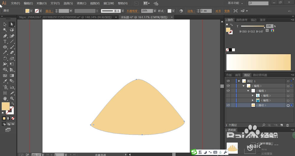 1、使用钢笔画出一个沙堆的路径,再用土黄色进行填充。