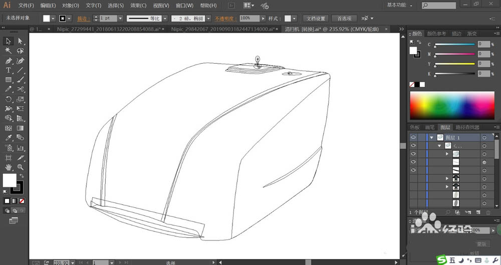 1、先用钢笔画出扫地机的轮廓路径,重点就是正面与侧面的细节路径。