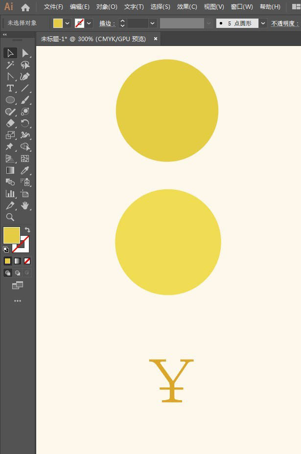 4、画一个圆,填充黄色,复制一个缩小一些填充暗黄色,打上一个人民币符号,三者叠到一起,做钱币。