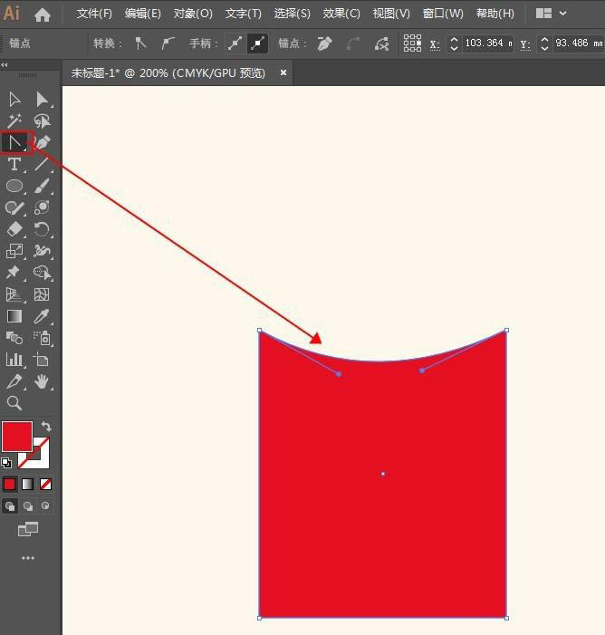 1、画个矩形,填充红色。复制一个矩形,用锚点工具将边向下拉成弧形。