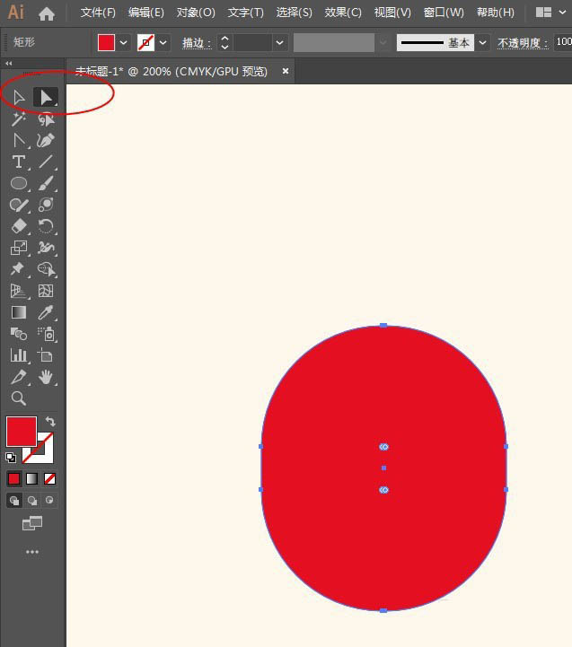 2、把另一个矩形用直接选择工具,调整成椭圆形。压扁一些,改为更暗一些的红色。将椭圆和矩形叠到一起,矩形位于上层。