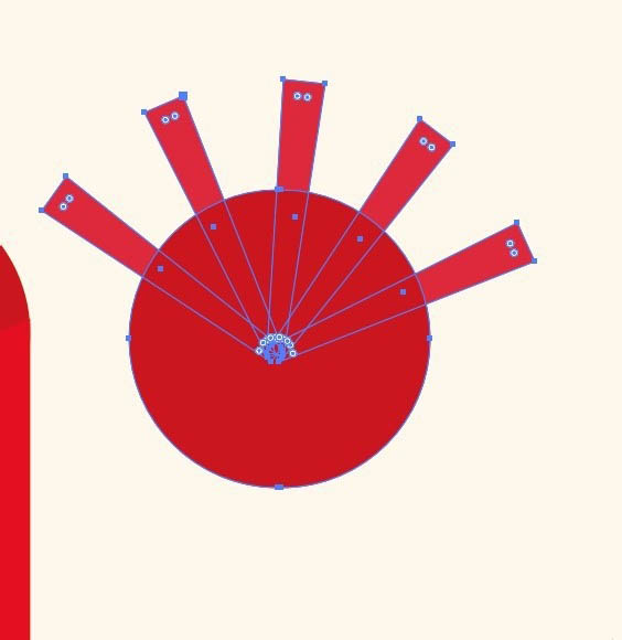 3、画个梯形,中心点放在顶端,旋转复制,按ctrl+d重复再制作成扇形。放到红包后面,与椭圆做剪切蒙版。
