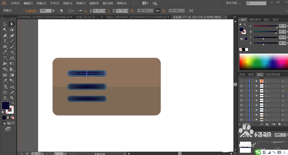 4、复制凹槽并缩小到88%左右,我们填充灰黑色,并使用网格工具做出灰黑色的渐变效果,让其呈现矩形凹槽的内凹效果。
