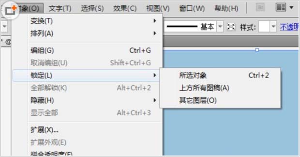 2、选中刚才绘制好的矩形,执行对象/锁定/所选对象。快捷键为ctrl+2,这样做的目的是防止后面的操作误选