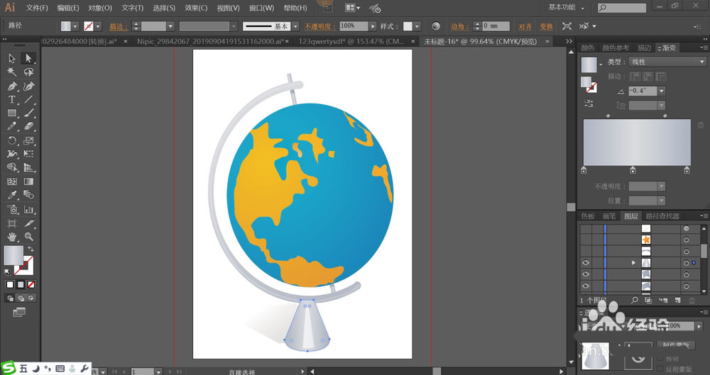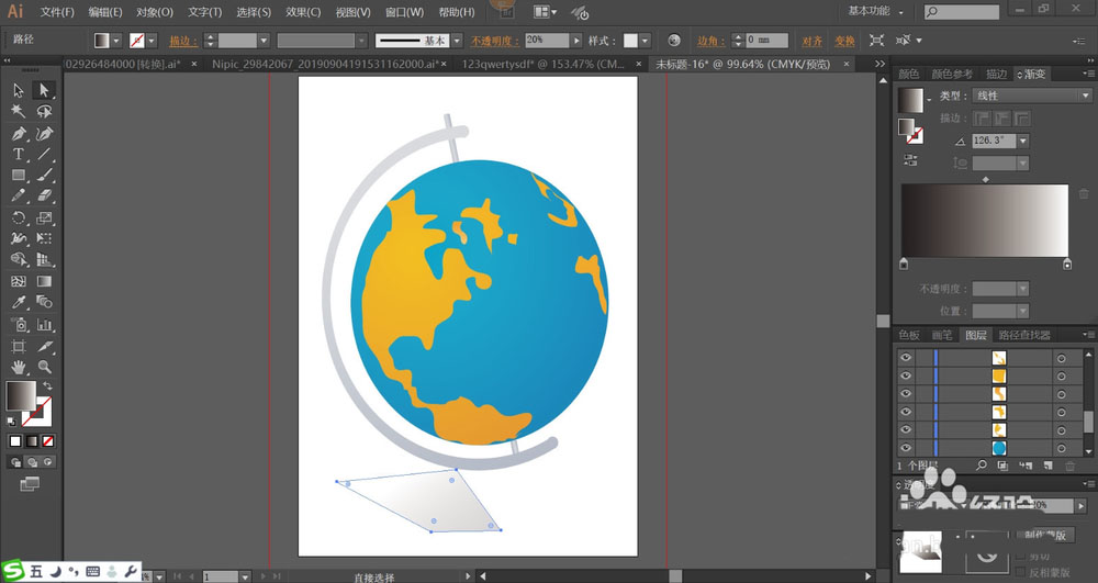6、接着,我们用透明度为20%的灰黑色渐变填充地球仪的阴影路径。