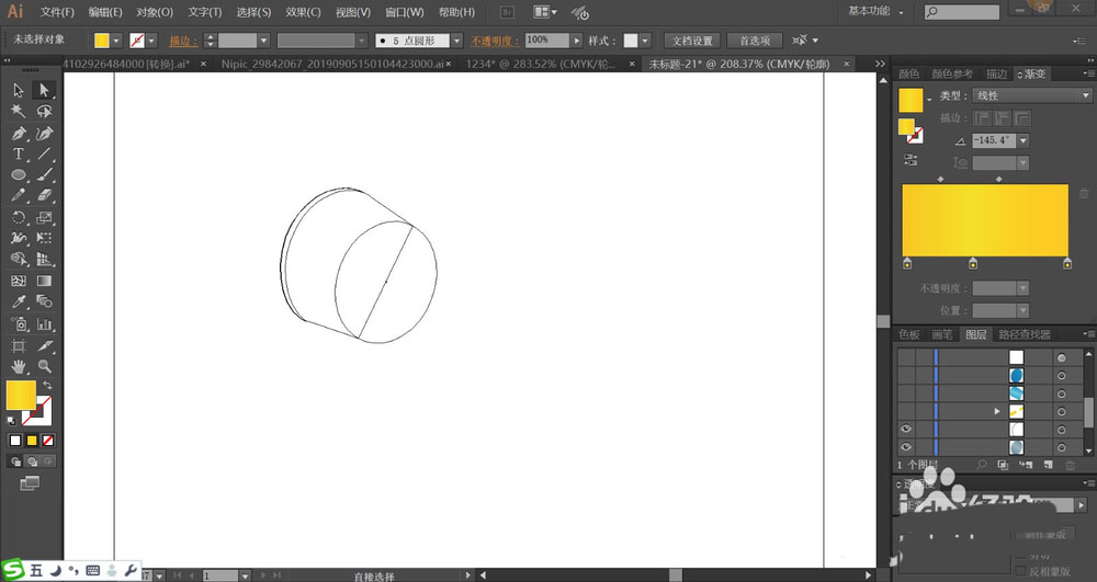 1、使用圆形画出飞行器的圆柱形结构件的细节元素路径。再用钢笔画出它的两个大翅膀。