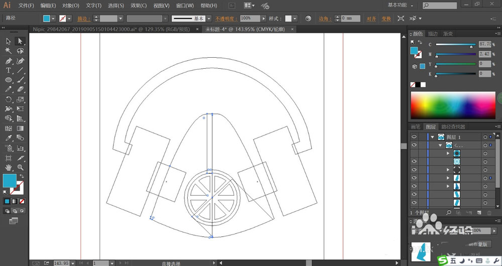 3、使用圆形工具与钢笔画出防护面具上面的圆形过滤网结构件,细节孔隙也一一勾勒出来。
