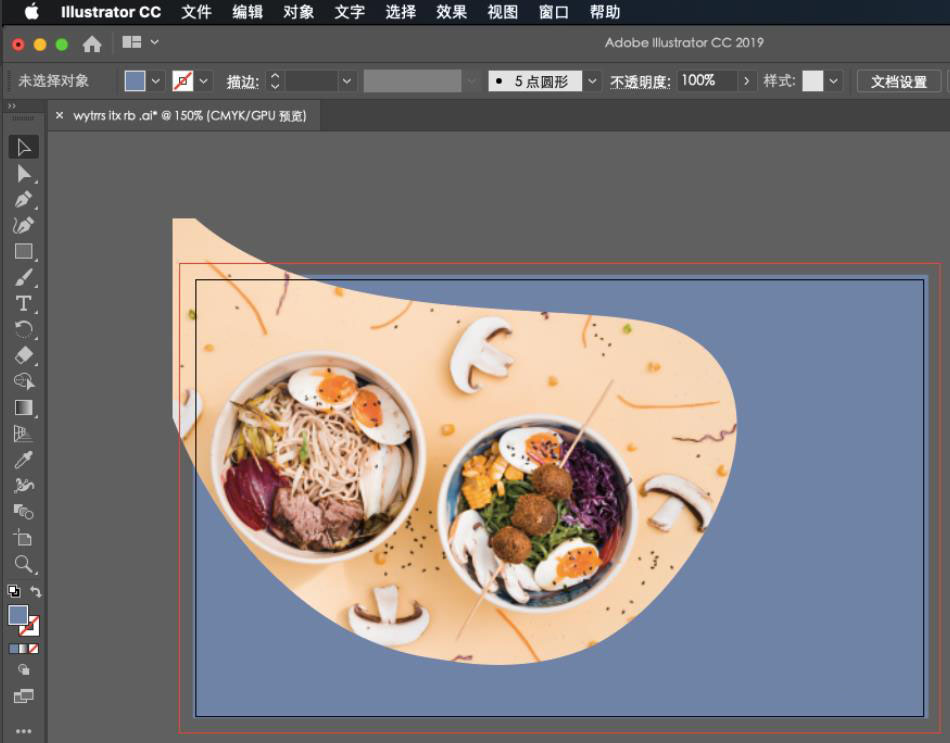 2、拖入打开配图素材,用曲率工具画个形状,与图片执行剪切蒙版,并在底部填充一个底色。