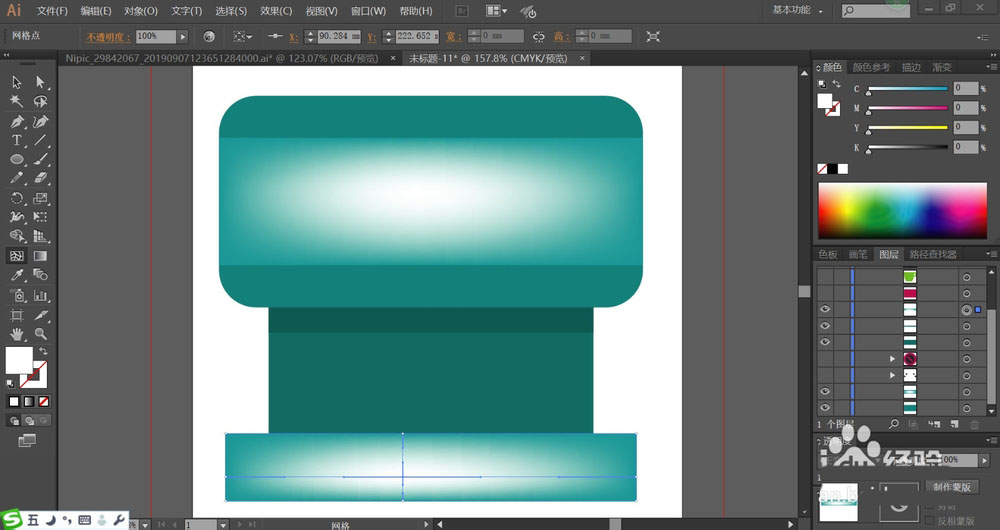 4、使用网格工具点击一下机器的高光部分,主要位于机器的上面中间与机器的底部,我们制作青绿色的渐变呈现在机器的上部与底部。