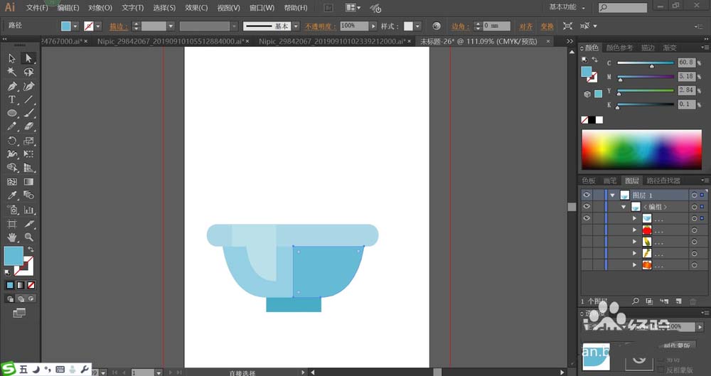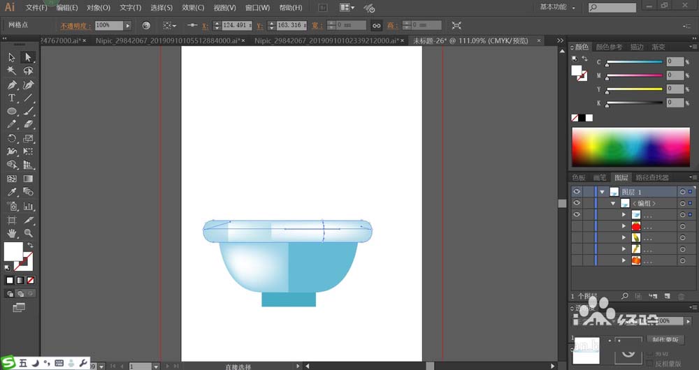 3、使用网格工具点击一下盆子的上方开口矩形与左侧的高光,让其呈现冰蓝色的渐变效果。