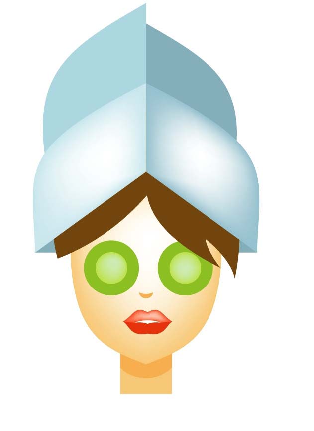 1、使用钢笔与圆形工具画出女孩的头部元素,主要包括:毛巾、黄瓜片、嘴唇等细节元素。