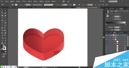 这一步,我们用大红色的渐变分别填充盒盖的上方与左右侧面,在盒盖的边缘用半透明的灰白色渐变填充,让其呈现高光效果。