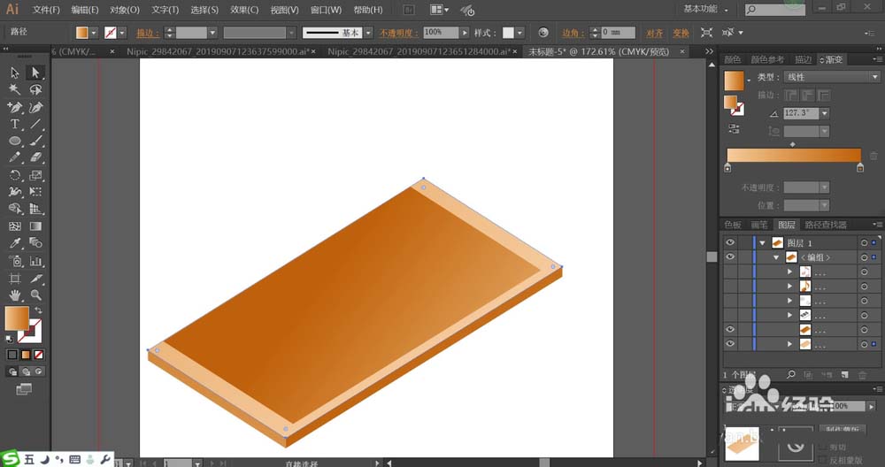 2、接着,我们用橙黄色与土黄色的渐变搭配填充琴弦的底座路径。