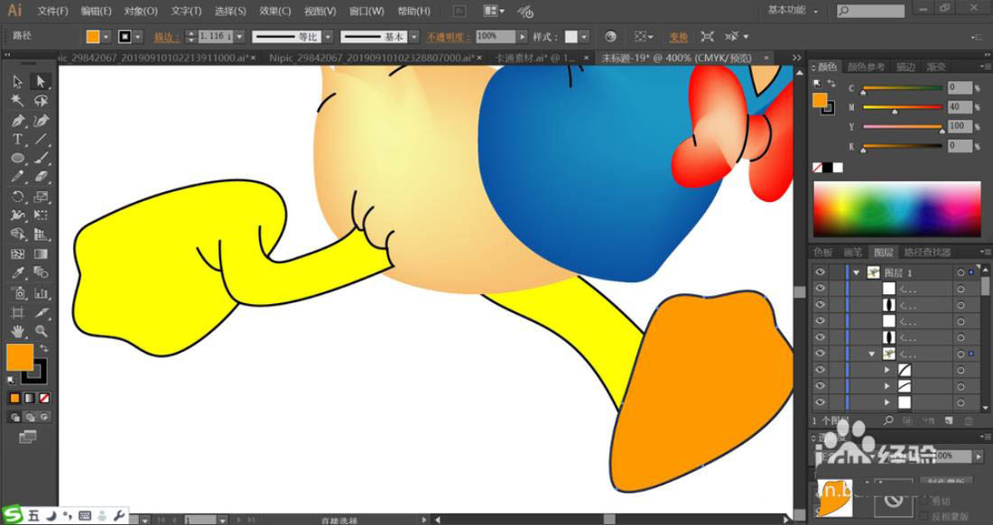 想要使用ai画一画唐老鸭,该怎么绘制呢?下面我们就来画一画卡通鸭,从中学习一下人物化的鸭子的动作与表情,体会黄色、蓝色、橙色、红色的搭配使用效果,详细请看下文介绍。