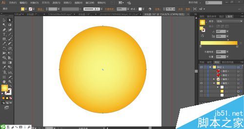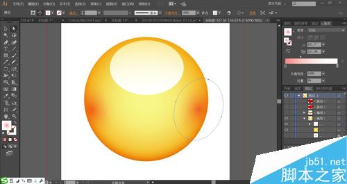 使用橙色到黄色的渐变填充圆形的头部路径,设置渐变的模式为径向。