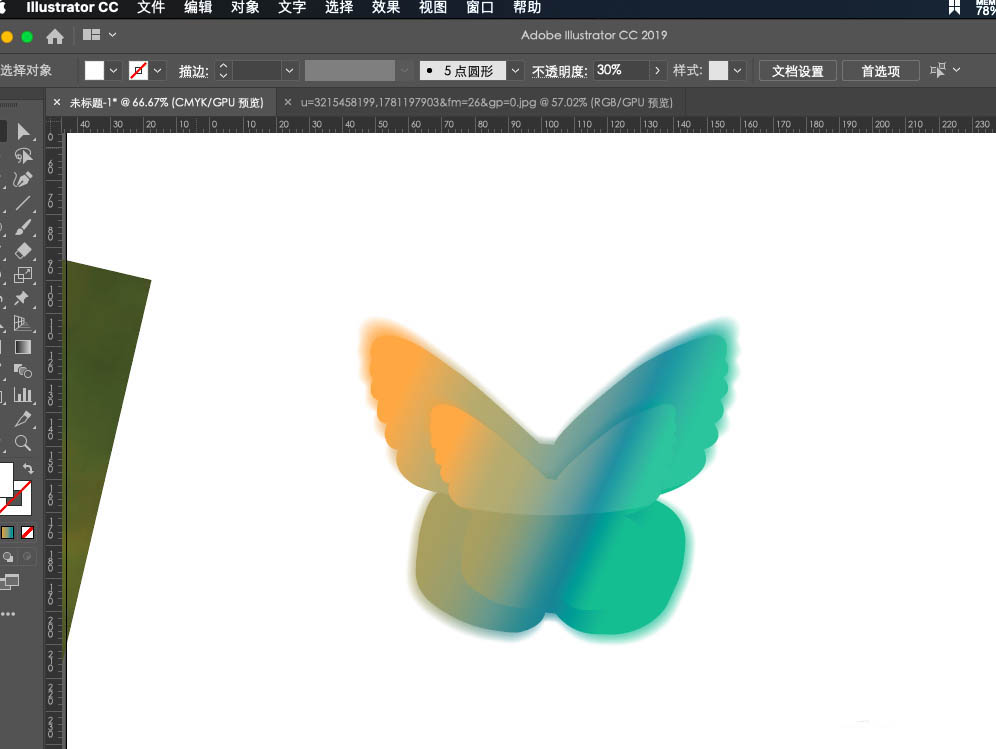 1、从百度上找一张蝴蝶的图片做绘图参考,用AI打开,按ctrl+2锁定图片。