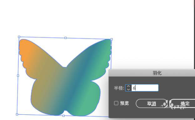 3、给勾画出来的蝴蝶轮廓填充渐变色。复制一层羽化一下,拉大一点放于底层。