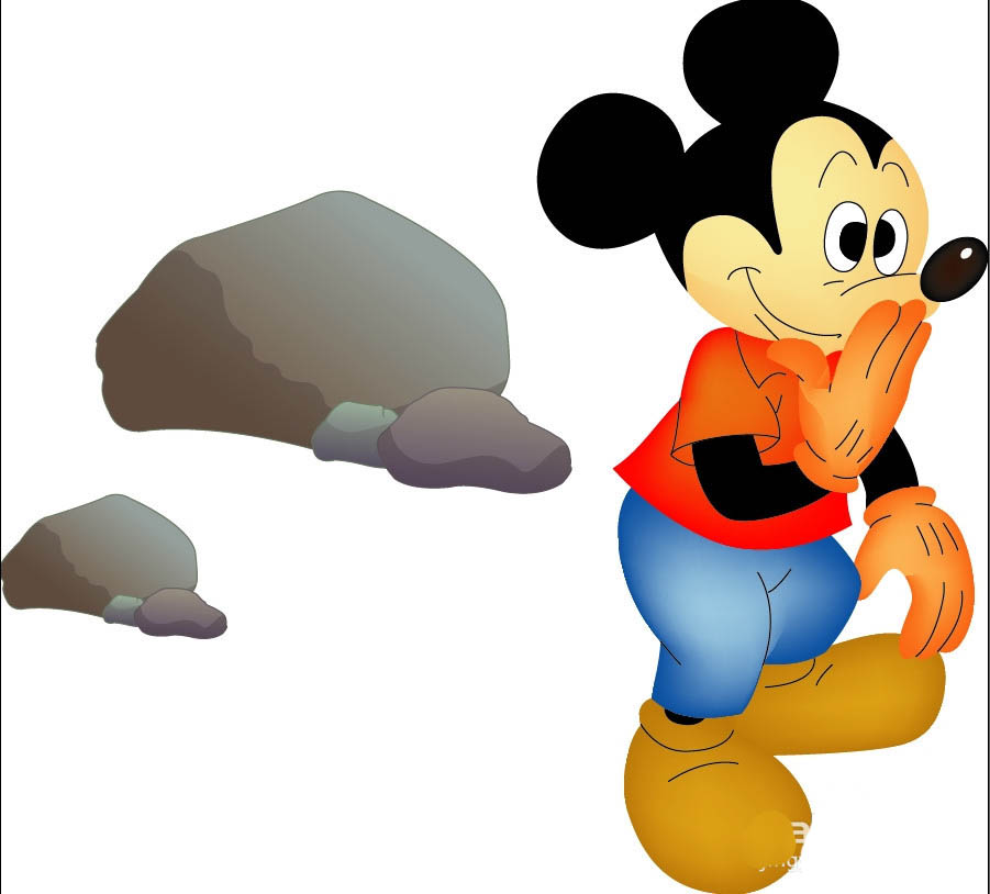 老鼠是很多动画片的素材,想要画米老鼠,该怎么绘制呢?今天,我们就来画一画老鼠的简单画,从中学习一下老鼠形象的画法,体会黄粉色、黑色、蓝色、红色的搭配技巧,掌握使用渐变色来呈现石头的材质,下面我们就来就来看看详细的教程。