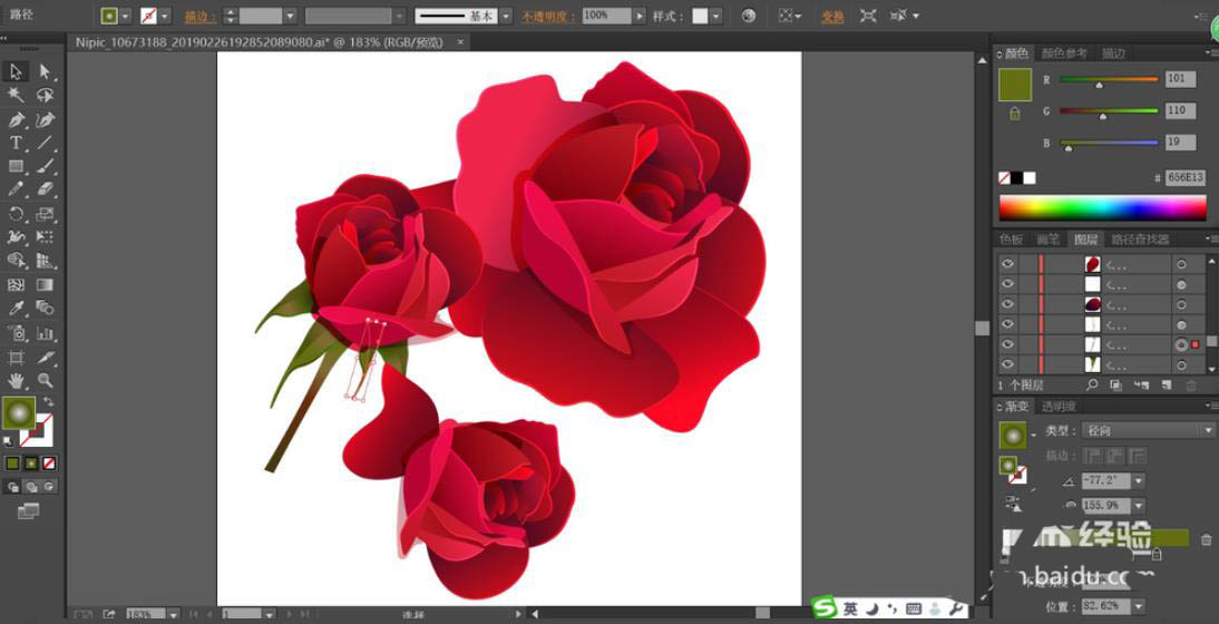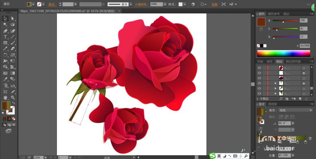 6、绘制出其它所有的花朵的枝杆的细节元素,完成玫瑰花图片设计。