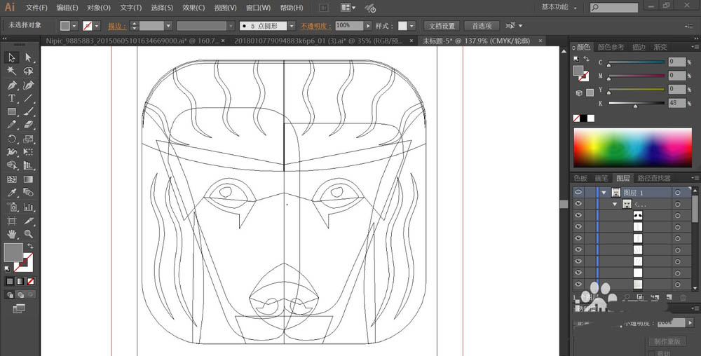 1、使用钢笔画出贵宾犬的基本轮廓,重点是脸部的层次结构,眼晴的内外层次、嘴巴的结构等等细节路径。