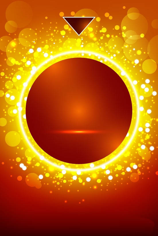 7、最后,我们用暗红色填充背景上方的三角形,再用黄棕色到黑色的渐变填充圆形,设置色彩模式为滤色,为红色的大圆形加强金黄色的光影效果,完成唱歌背景设计。