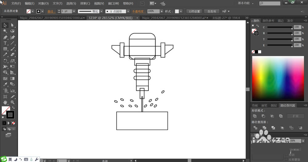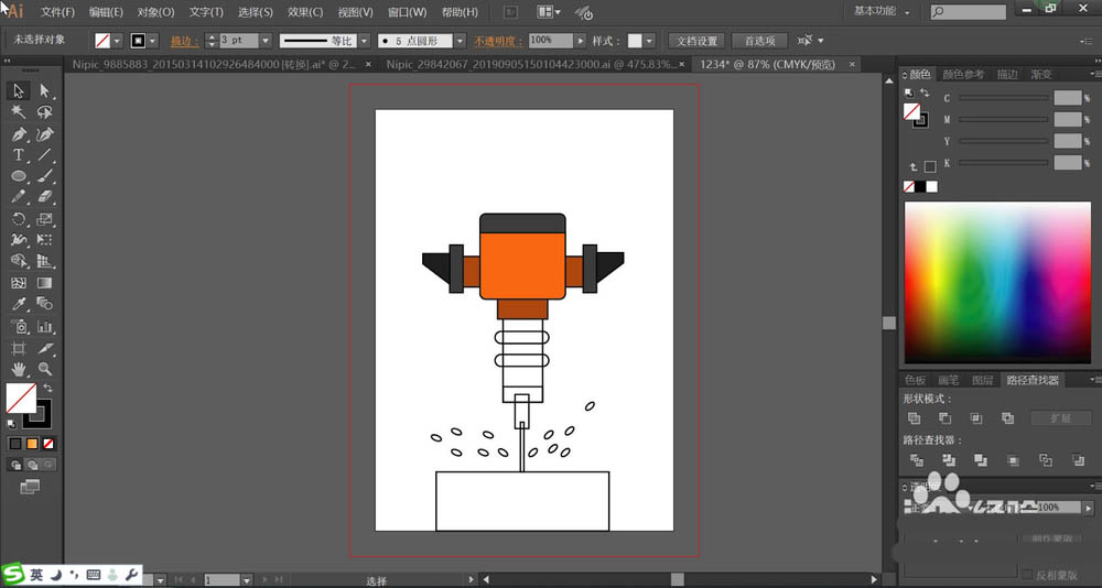 7、我们用选择工具把打孔机全选,把颜色调成描边,再把描边去掉,打孔机图片设计完成了。