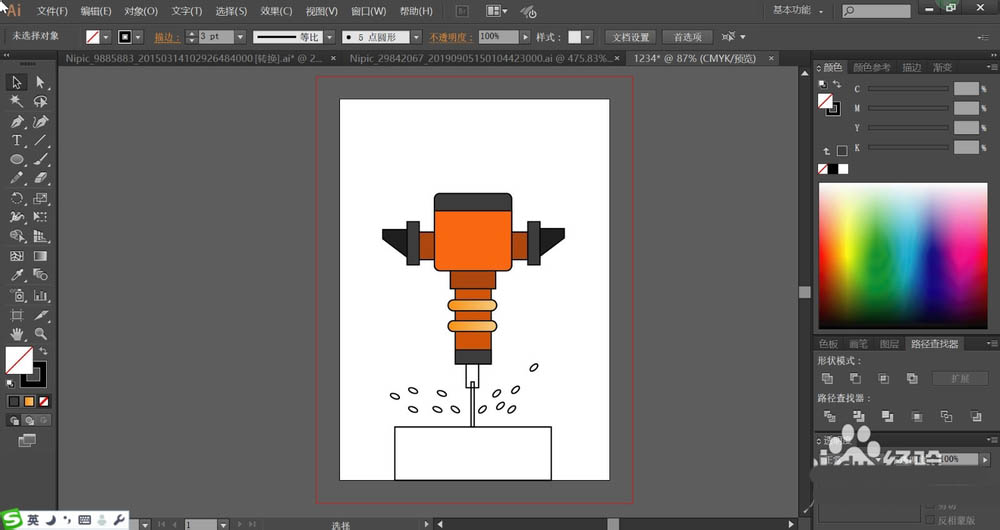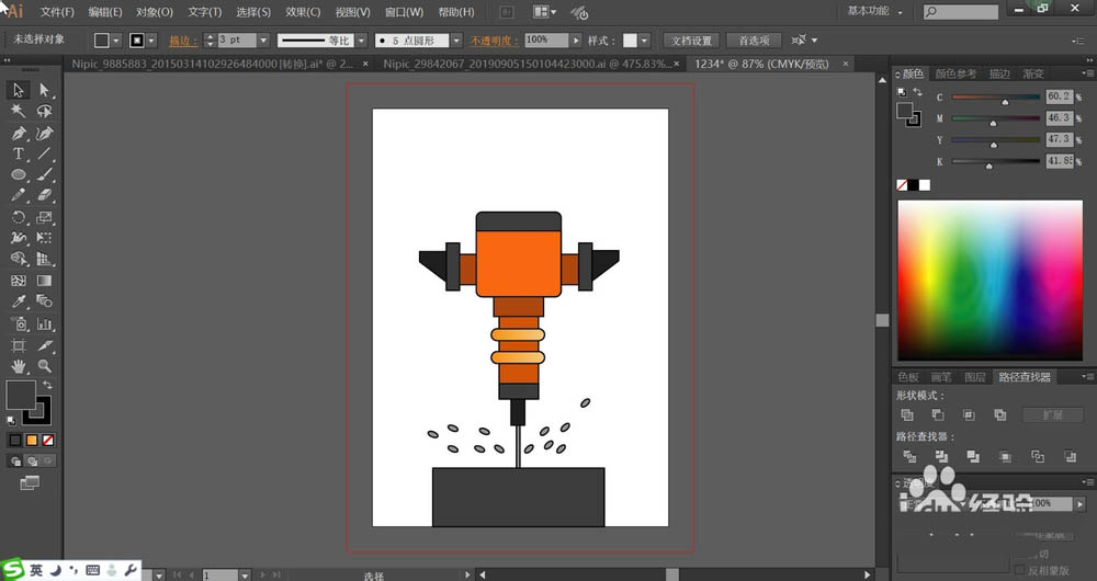 打孔机是我们在建房子的时候必须要用的一种工具,想要绘制扁平化色块组成的图形呢?今天我们就来设计一个打孔机图片,从而学习一下橙色与灰黑色的搭配,下面我们就来看看详细的教程。