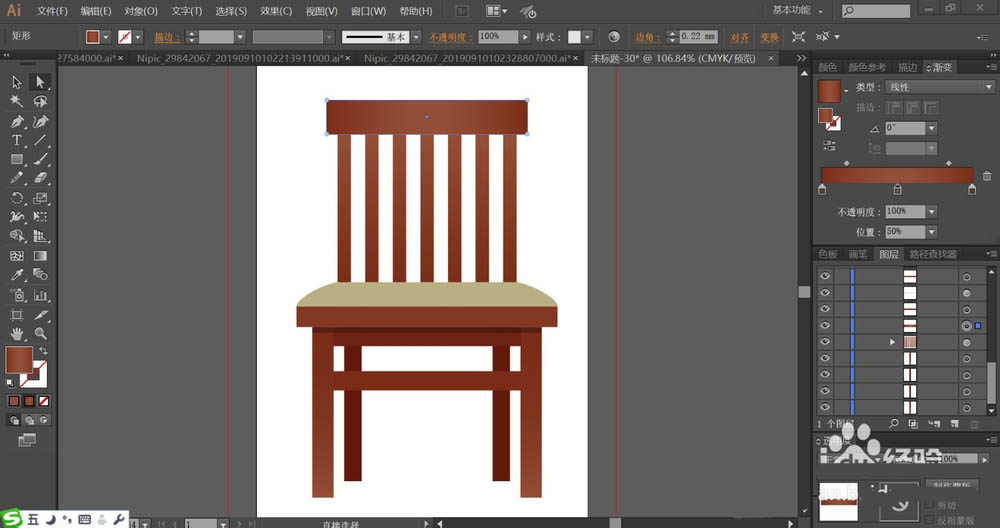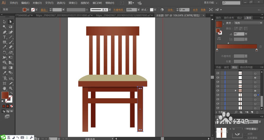 5、使用较亮的红棕色的渐变填充椅子的前面两只脚,再用较暗的红棕色填充椅子后面的两只脚。
