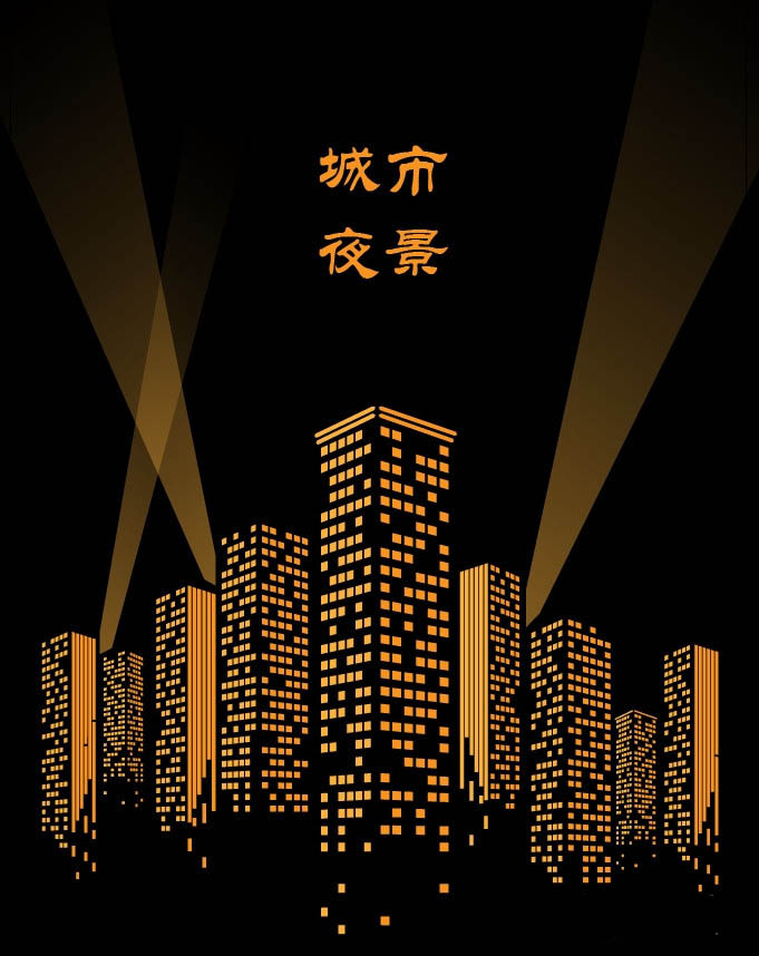 7、最后,我们用径向渐变的黄色填充文字的下方作为背景色,让高光呈现在文字的上方,完成城市夜景图片设计。