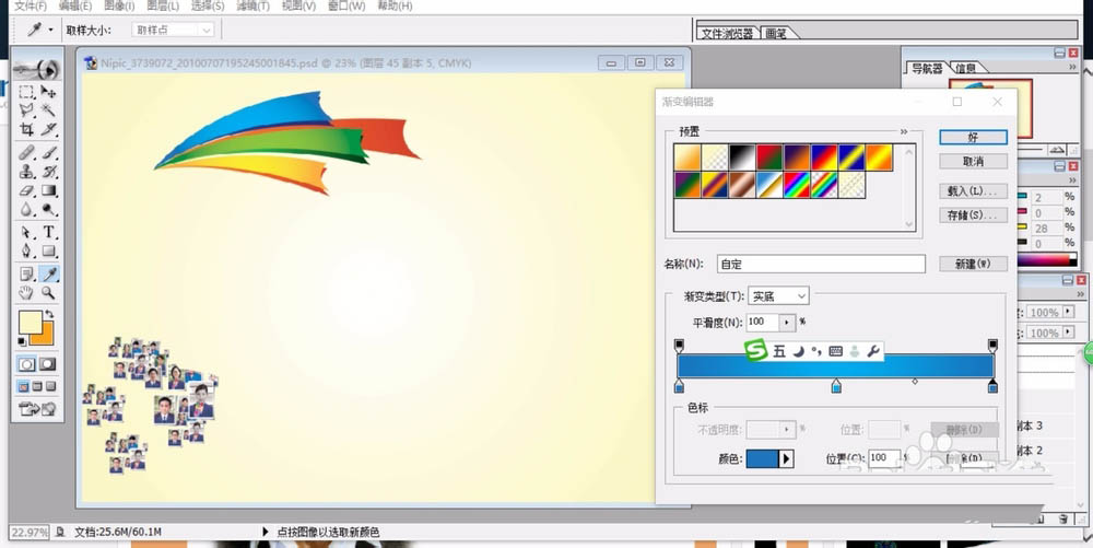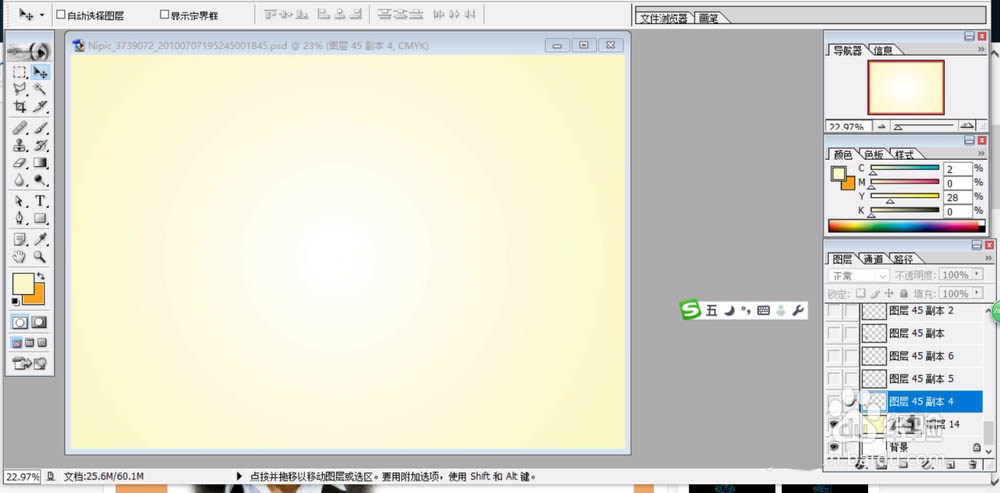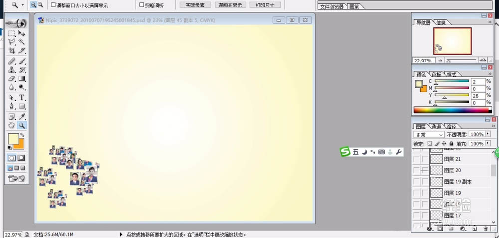 8、继续在图片当中置入笑脸的图片,我们设置成半透明的图层效果,并分布到不同的位置。