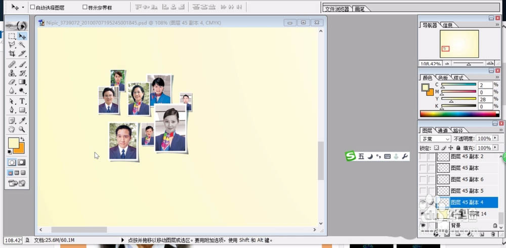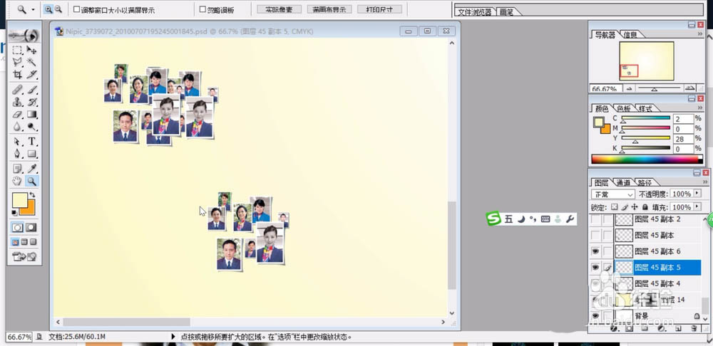 3、复制这些照片到下方,让照片分布在图片的左下侧位置。