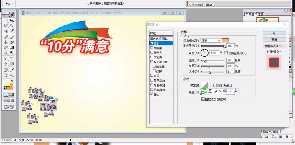 2、置入员工的照片,我们做一个白色的描边再做一个阴影,让照片排列出自然的形状。