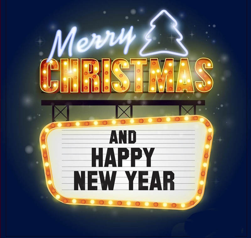 7、画出霓虹灯下方的灯架并用黑色填充,完成圣诞节霓虹灯图片设计。