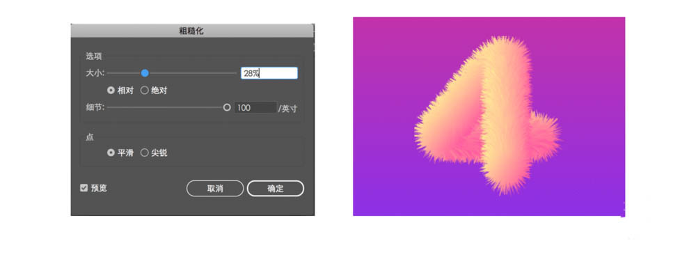 4、执行效果-扭曲与变换-粗糙化,根据如图的参数进行调节。