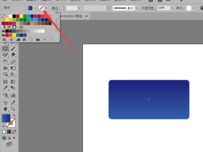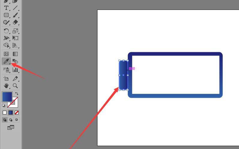 7、圆角矩形绘制完毕后,使用【吸管工具】在填充渐变色的区域内单击,为其填充一样的颜色。
