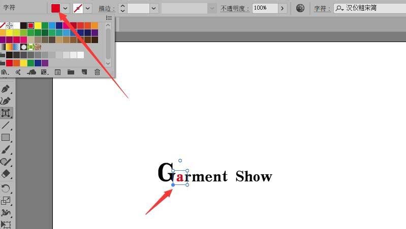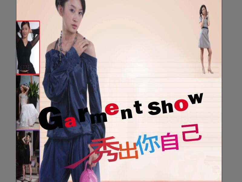 1、新建一个空白文章,利用【文字工具】输入英文字母‘Garment Show’。