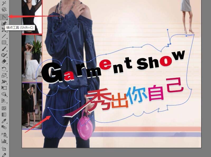 1、使用【钢笔工具】和【锚点工具】,根据文字的形态绘制出图形。