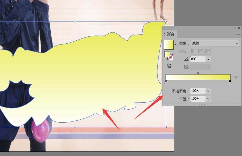 2、为绘制的图形填充由黄色到白色的线性渐变色,然后去除描边。