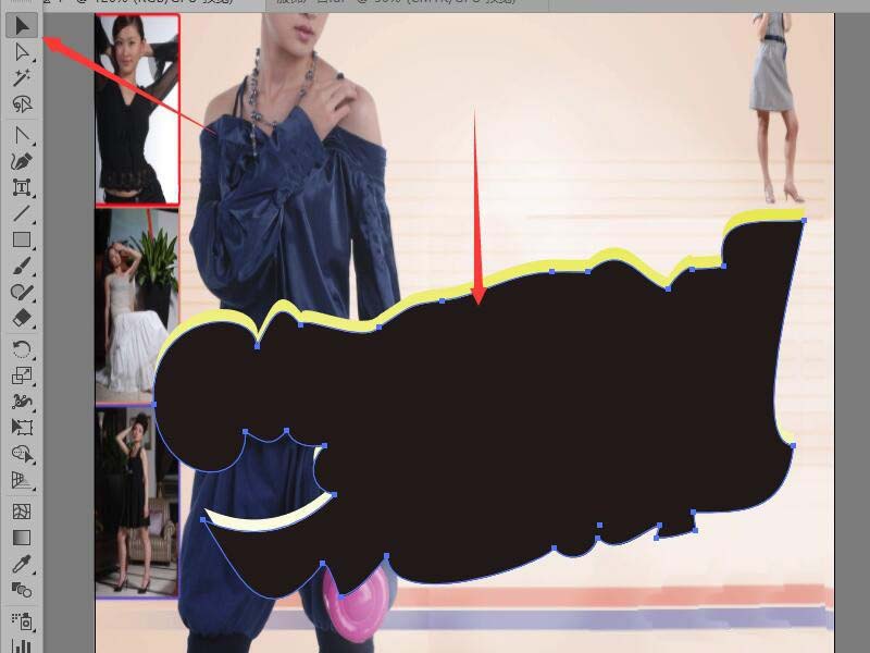 3、使用【选择工具】选择图形,并按住ALT键向下拖动复制一个图形,并填充为黑色。