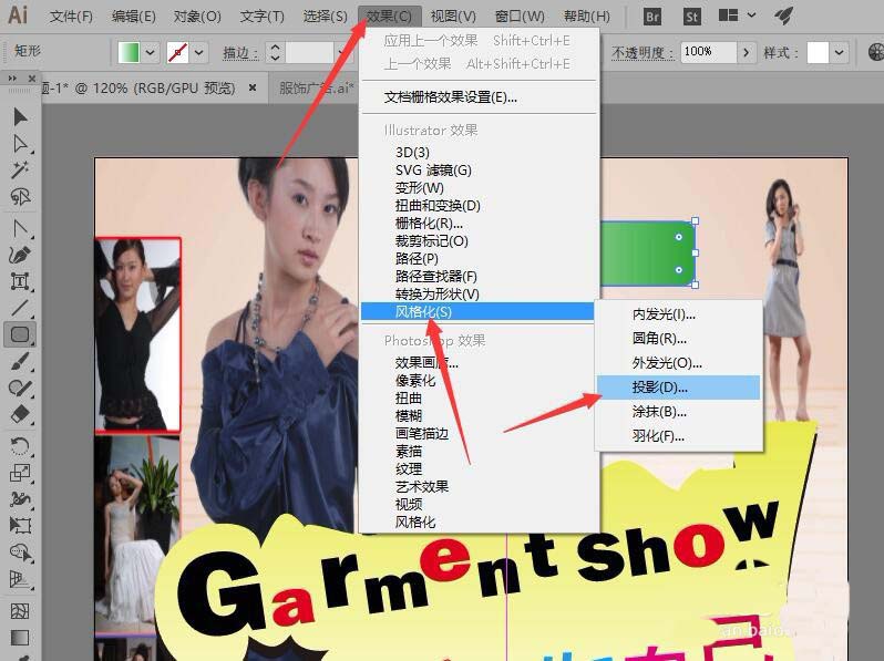 7、执行菜单栏中的【效果】【风格化】【投影】命令,打开投影对话框。