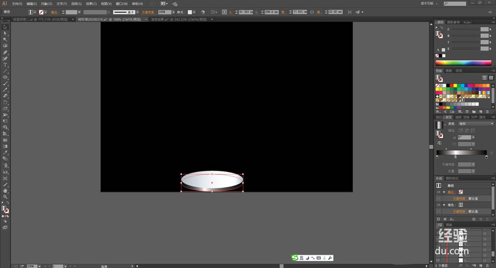 2、我们用灰白色的渐变与灰黑色的渐变搭配填充路灯架底部的圆盘结构件,黑色的圆形放在下方,灰白色的圆形放在上方。