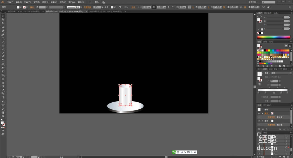 3、使用灰白色的渐变填充圆盘上面的圆柱,在圆柱的上方用浅灰色的渐变填充顶端的细节路径。