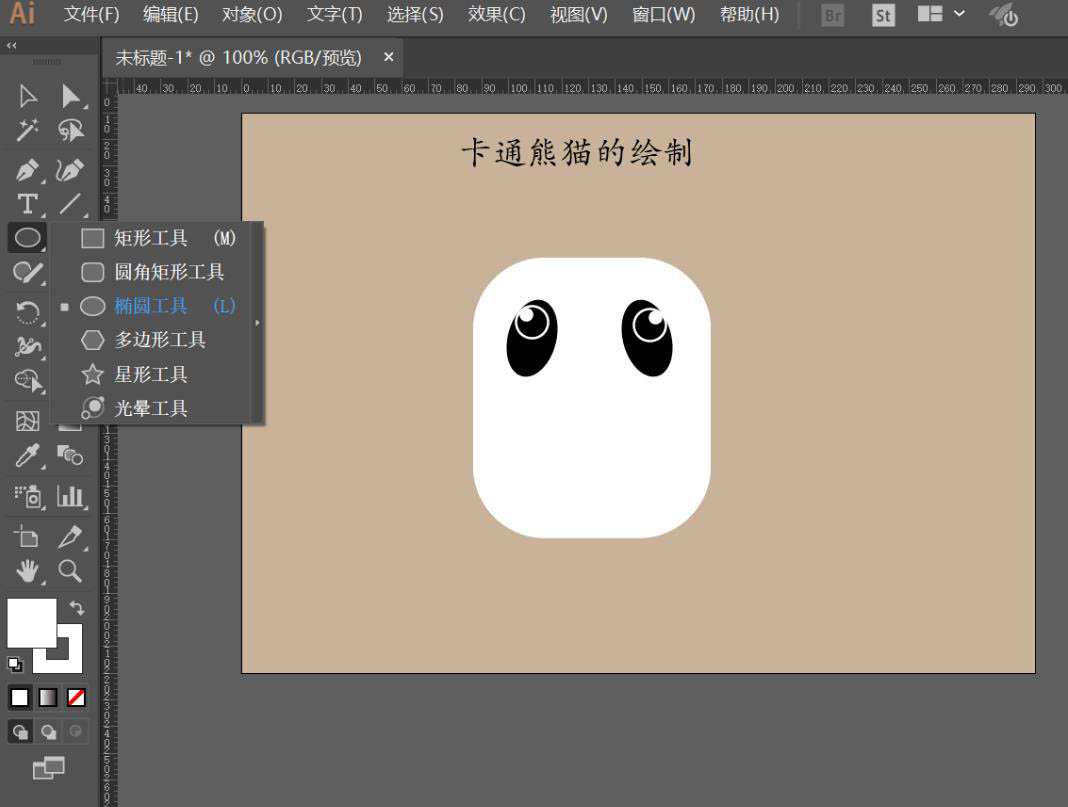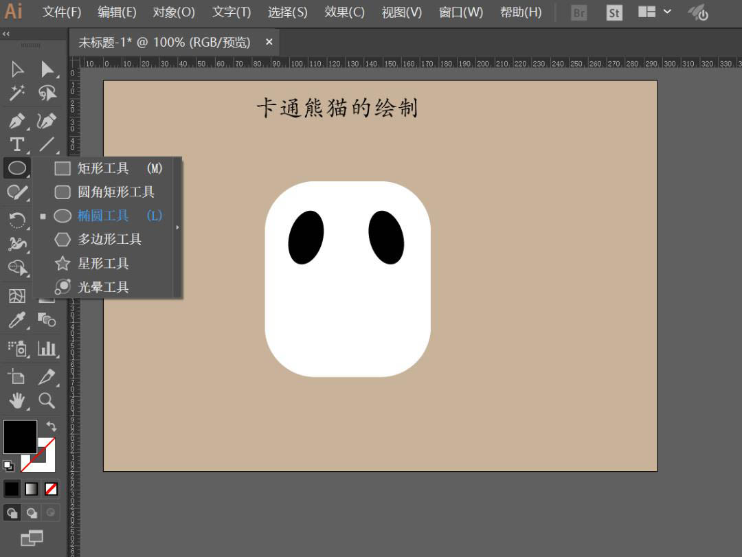 3、利用椭圆工具绘制两个椭圆图案以充当熊猫的眼眶;